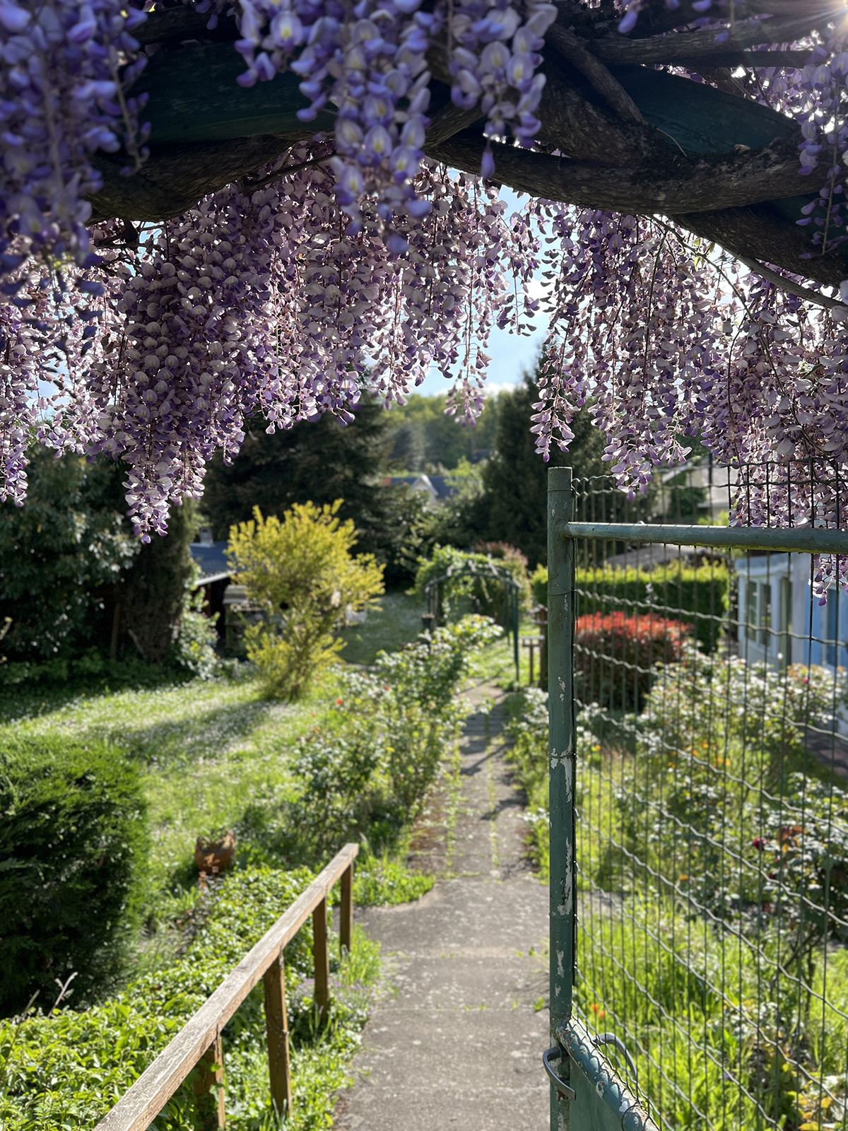 Their family home welcomes you from a gate embraced by a canopy of Glycine vines- wisteria that, when in bloom, overwhelms the senses with its sweet perfume and seems to whisper a call to come home.